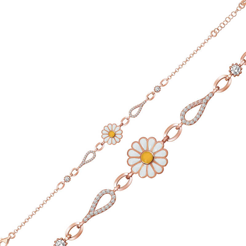 Silver Rose Daisy Women's BraceletDaisy flower expresses the meaning of pure love. One of its most important features is that there is one on each stem. Inspired by nature, this sparkling women's bracelet is a wonderful design that you can enjoy using and gifting to your loved ones. Silver Daisy women's bracelet is made of 925 sterling silver. This silver bracelet has rose plating. Rose plating preserves its shine for a long time and delays oxidation. Like all silver products, the silver daisy women's bracelet model is also handmade. Due to silver and precious stones, there may be ± 10% deviation in the average product weight.Daisy Width: 1.40 cm Daisy Length: 1.40 cm Bracelet Length: 20.50 cm Average Weight: 5.20 gr.