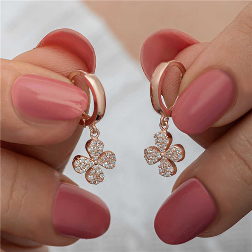 Silver Rose Dangle Clover Women's EarringsThis collection includes the most special earring models designed in accordance with fashion for women who care about their appearance. You can create a dazzling and charming style with earring models, each appealing to a different style and use. Clover earrings are among the original models that can adapt to the style of young people and women who feel young. This earring is a perfect option for a birthday gift, Valentine's Day gift or on special occasions. Silver rose clover women's earrings are made of 925 sterling silver. Rose plated silver. Rose plated silver earring models preserve their shine for a long time and oxidation is delayed. As with all women's earrings, this earring model is also handmade. There may be a ± 10% deviation in the average product weight due to silver and precious stones.Width: 1.20 cm. Height: 2.50 cm. Average Weight: 2.70 gr.