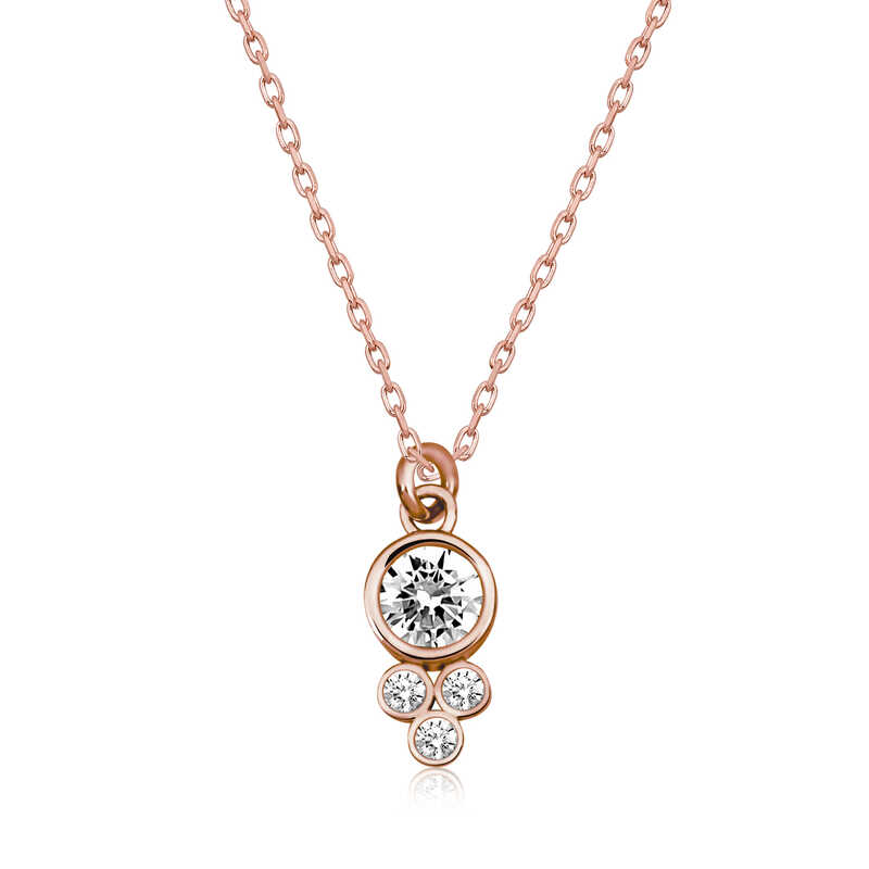Silver Rose Dew Drop Round Solitaire Women's Necklace This round solitaire necklace will suit those who want to be reminded of the stars with the dazzling shine of silver and zircon. Made of 925 sterling silver, this set is perfect for all combinations, from sporty to classic, that both you and your loved ones will enjoy wearing. The white stones on the necklace are zircon. Delight yourself and your loved ones with a stylish and sparkling round solitaire necklace. The silver round solitaire women's necklace is rose-plated. All silver women's necklace models with rose plating maintain their shine for a long time. The chain length of the necklace is 45 cm. As with all our silver women's necklace models, the silver round solitaire women's necklace is handcrafted. Due to silver and precious stones, there may be a ± 10% deviation from the average product weight. Width: 0.60 cm Length: 1.50 cm Average Weight: 2.40 gr.