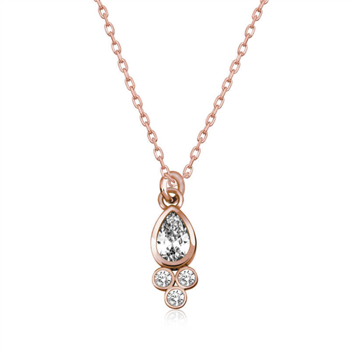 Silver Rose Dew Drop Solitaire Women's Necklace This dew drop solitaire necklace will suit those who want to remind them of the stars with the dazzling shine of silver and zircon. Made of 925 sterling silver, this set is perfect for all combinations, from sporty to classic, that both you and your loved ones will enjoy wearing. The white stones on the necklace are zircon. Delight yourself and your loved ones with a stylish and sparkling dew drop solitaire necklace. The silver dew drop solitaire women's necklace is rose-plated. All silver women's necklace models with rose plating maintain their shine for a long time. The chain length of the necklace is 45 cm. As with all our silver women's necklace models, the silver dew drop solitaire women's necklace is handcrafted. Due to silver and precious stones, there may be a ± 10% deviation from the average product weight. Width: 0.50 cm Length: 1.60 cm Average Weight: 2.20 gr.