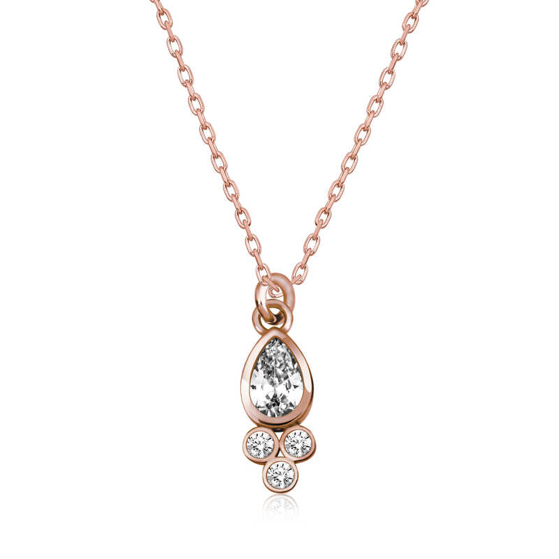 Silver Rose Dew Drop Solitaire Women's Necklace This dew drop solitaire necklace will suit those who want to remind them of the stars with the dazzling shine of silver and zircon. Made of 925 sterling silver, this set is perfect for all combinations, from sporty to classic, that both you and your loved ones will enjoy wearing. The white stones on the necklace are zircon. Delight yourself and your loved ones with a stylish and sparkling dew drop solitaire necklace. The silver dew drop solitaire women's necklace is rose-plated. All silver women's necklace models with rose plating maintain their shine for a long time. The chain length of the necklace is 45 cm. As with all our silver women's necklace models, the silver dew drop solitaire women's necklace is handcrafted. Due to silver and precious stones, there may be a ± 10% deviation from the average product weight. Width: 0.50 cm Length: 1.60 cm Average Weight: 2.20 gr.