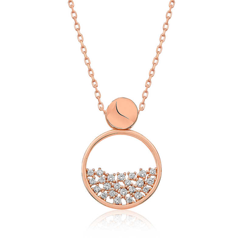 Silver Rose Dew Drop Women's Necklace The rose dew drop women's necklace, adorned with white zircon stones, is designed for those who love elegance and shine. It is a product that you can enjoy using at any time of the day, will attract everyone's admiration and will dazzle. Silver dew drop women's necklace is made of 925 sterling silver. This necklace is rose plated. Rose-plated products preserve their shine for a long time. The stones on them are zircon. Like all silver women's necklace models, the silver rose dew drop women's necklace model is also produced by hand. Due to silver and precious stones, there may be a ± 10% deviation in the average product weight. All of our products are produced by hand. Width: 1.10 cm Length: 2.30 cm Average Weight: 3.00 gr.