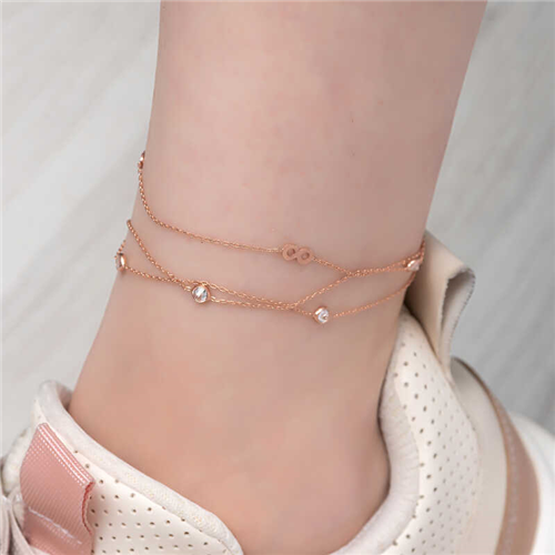 Silver Rose Double-Chain Infinity AnkletWhile women are often thought of when jewelry is mentioned, it has influenced both men and women throughout history. Women wear jewelry to appear more elegant and attractive, while men wear it for style. Jewelry not only represents social status, personality, beliefs, and identity, but also serves various functions. In Anatolia, women working in vineyards, gardens, and fields could easily locate their young children by the sound they made from anklets. The sound they made was also used to deter poisonous animals like snakes and scorpions. Today, they are worn by women who want to look elegant and stylish. Don't deprive your wrists of this elegance and visit our anklet section to choose your favorite model. The double-chain infinity anklet is made of 925 sterling silver. Rose plating on the silver. Rose-plated women's anklets preserve their shine for a long time, turn silver to a rose color, and delay oxidation. All of our products are handmade. Due to silver and precious stones, there may be a ± 10% deviation in product weight.Anklet Infinity Width: 0.40 cmAnklet Infinity Length: 0.80 cmAnklet Chain Length: 26 cmAverage Weight: 2.80 gr.