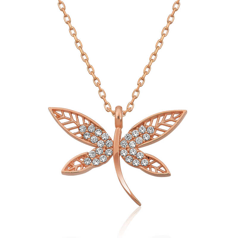Silver Rose Dragonfly Women's Necklace The Dragonfly, a symbol of loyalty; is the symbol of monogamy, fidelity, and love unto death. Because, by nature, after mating, the male dragonfly dies. In short, the male dragonfly mates with only one female dragonfly for its entire life. Moreover, knowing that death will eventually occur, it does not give up. You can gift a Dragonfly (Silver Necklace, Bracelet, Earrings) to your loved one to show your love and loyalty and make her happy. The silver dragonfly women's necklace, which is a model that you and your loved ones can easily use in daily life, is made of 925 sterling silver. Rose plated silver. Rose plated silver women's necklace models preserve their shine for a long time and oxidation is delayed. The stones on the necklace are zircon. The average silver chain length is 45 cm. Like all silver women's necklace models, this silver dragonfly women's necklace model is also handmade. Due to silver and precious stones, there may be a ± 10% deviation in the specified product weight. Width: 2.00 cm Length: 1.50 cm Average Weight: 2.20 gr.