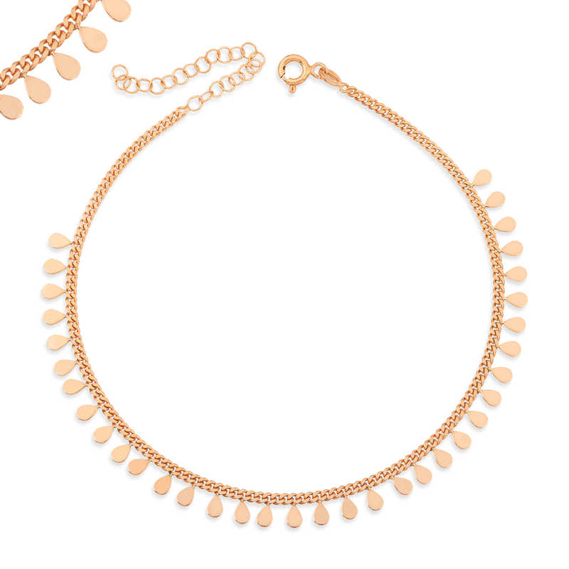 Silver Rose Drop AnkletAlthough women are usually thought of when it comes to jewelry, it has influenced both men and women throughout history. Jewelry, worn by women to appear more elegant and attractive and by men for style, not only represents social status, personality, beliefs, and identity, but also has various functions. In Anatolia, women working in vineyards, gardens, and fields could easily find their young children's locations thanks to the sound made by the anklets they wore on their feet. The anklet was also used to deter poisonous animals such as snakes and scorpions from approaching thanks to the sound it made. Today, it is used by women who want to look elegant and stylish. Don't deprive your ankles of this elegance and visit our anklet section to choose your favorite model. The product will be sent in a gift box... All of our products are handmade. Due to silver and precious stones, there may be ± 10% deviation in product weight.Width: 0.60 cmLength: 0.30 cmAverage Weight: 4.50 grLength: 26.00 cm