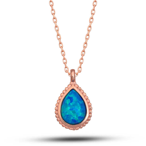 Silver Rose Drop Blue Opal Stone Women's Necklace Your elegance is completed with necklaces full of elegance. Necklaces created using opal stones will blow your mind. From minimalist models suitable for daily use to more flamboyant designs that will complete your outfits at events, silver necklaces are always with you. With its sparkle and dazzling structure, the silver drop blue stone opal necklace will turn all eyes on you. You are sure to find the right necklace for both you and your loved ones in this collection. Silver drop blue opal stone necklace is made of 925 sterling silver. Rose plated silver. Rose plated silver women's necklaces preserve their shine for a long time and oxidation is delayed. The stone on it is blue opal. Like all silver women's necklaces, this silver drop blue opal stone necklace model is also handmade. Due to silver and precious stones, there may be a ± 10% deviation in the average product weight. Width: 0.80 cm Length: 1.20 cm Average Weight: 1.40 gr.
