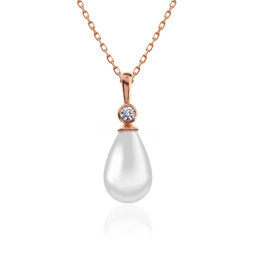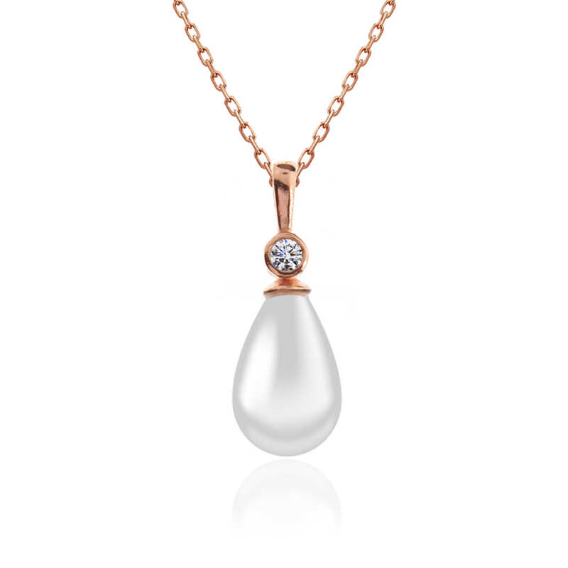 Silver Rose Drop Pearl Women's Necklace Pearl symbolizes simplicity and humility. Although it looks plain, it actually means being very precious. Pearl is the best way to express your love and feelings for your lover. It is the symbol of shine, light, enlightenment and hope. How about making your feelings felt on the skin of the woman you love with the silver drop pearl women's necklace, which every woman should have among her accessories and which will never go out of style... It is made of 925 sterling silver. Rose plated on silver. Rose plated silver pearl necklaces preserve their shine for a long time and delay oxidation. The stone on it is a cultured pearl. The average chain length is 45 cm. All of our products are handmade. Due to silver and precious stones, there may be ± 10% deviation in the average product weight. Width: 0.60 cm. Length: 1.50 cm. Average Weight: 1.40 gr.