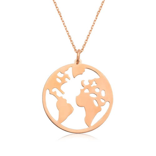 Silver Rose World Necklace A silver World necklace that will add beauty to your lover or wife, who is as beautiful as the world, is with you. It will be one of the most meaningful gifts you can buy for your lover who you say is my world. This stylish World necklace is a perfect option for a birthday gift, Valentine's Day gift or a gift for mothers on special occasions. The silver World women's necklace is made of 925 sterling silver. Rose plating on this necklace. Rose plating preserves its shine for a long time and turns the silver color into pink. Like all our silver women's necklace models, the silver World women's necklace is also handmade. Due to silver and precious stones, there may be a ± 10% deviation from the average product weight. Width: 2.30 cm Length: 2.30 cm Average Weight: 2.10 gr. Chain Length: 45 cm