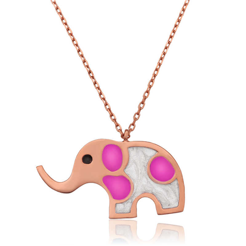 Silver Rose Elephant Women's Necklace The elephant is a symbol of wisdom, talent, good luck, and abundance. This stylish necklace is a perfect option for a birthday gift, Valentine's Day gift, or a gift for mothers on special occasions. This meaningful necklace is made of 925 sterling silver. Rose plating is applied to the silver. Rose-plated silver necklaces preserve their shine for a long time and delay oxidation. The average chain length is 45 cm. Like all silver necklace models, this silver elephant women's necklace model is also handmade. Due to silver and precious stones, there may be a ± 10% deviation in the average product weight. Necklace Width: 1.50 cm Necklace Width: 2.30 cm Average Weight: 2.10 gr.
