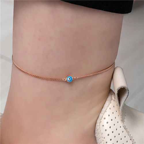Silver Rose Evil-Eye Beaded AnkletWhile jewelry often comes to mind for women, it has captivated both men and women throughout history. Women wear jewelry to appear more elegant and attractive, while men wear it for style. Jewelry not only represents social status, personality, beliefs, and identity, but also serves various functions. In Anatolia, women working in vineyards, gardens, and fields could easily locate their young children by the sound they made from anklets. The sound they made was also used to deter poisonous animals like snakes and scorpions. Today, they are worn by women who want to look elegant and stylish. Don't deprive your wrists of this elegance and visit our anklet section to choose your favorite model. The Evil-Eye Beaded anklet is made of 925 sterling silver. Rose plating on the silver. Rose-plated women's anklets preserve their shine for a long time, turn the silver to a pink color, and delay oxidation. All of our products are handmade. Due to silver and precious stones, there may be a ± 10% deviation in product weight.Anklet Evil Eye Diameter: 0.40 cmAnklet Chain Length: 26 cmAverage Weight: 1.60 gr.