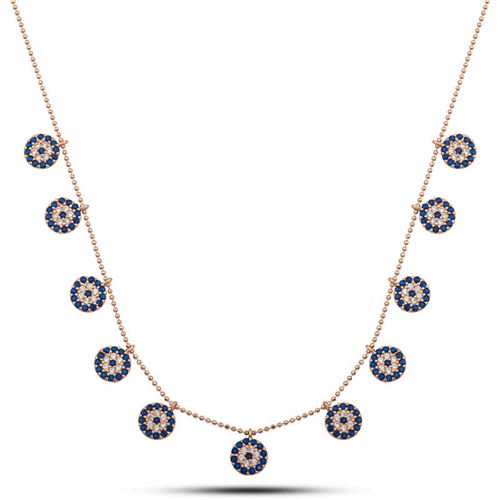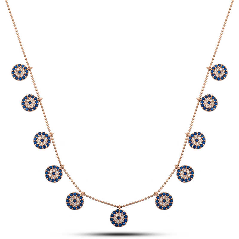 Silver Rose Evil Eye Luck Women's Necklace The silver evil eye bead is a model that you can easily use in daily life with its simple design. The evil eye bead protects you from evil eyes. The stones on this stylish silver necklace model are zircon. Rose plated silver is used to delay oxidation and preserve its shine for a long time. The average chain length, which is completely silver, is 45 cm. This evil eye luck necklace model is handmade. Due to silver and precious stones, there may be ± 10% deviation from the average product weight. Evil Eye Diameter: 0.70 cm Chain Length: 45 cm Average weight: 5.20 gr