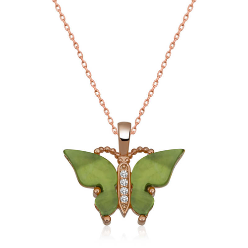 Silver Rose Green Tiger's Eye Stone Butterfly Women's Necklace Tiger's eye, a quartz group stone, is one of the most valuable healing stones. When polished, it gains a silky appearance. Tiger's eye stone is an iridescent stone. It is generally used as jewelry. Tiger's eye stone is known to be good for asthma diseases. It also acts as a relaxant in cases of nervous system disorders and has a relaxing effect. It is a wonderful emotional balancer. The butterfly is one of the most popular motifs preferred by women. It reminds lovers of the mystery of nature and the richness of human imagination. Symbolizing freedom, innocence and purity, butterflies are an expression of pure love and affection. The Green Tiger's Eye Stone butterfly women's necklace, which you and your loved ones will enjoy wearing, will be one of the best gifts for your loved one. The necklace is made of 925 sterling silver. Rose plated silver women's necklaces preserve their shine for a long time and delay oxidation. The average silver chain length is 45 cm. As with all silver women's necklaces, the silver Green Tiger's Eye Stone butterfly women's necklace model is also handmade. Due to silver and precious stones, there may be ± 10% deviation in the average product weight. Width: 1.70 cm Length: 1.50 cm Chain Length: 45 cm Weight: 1.83 gr.