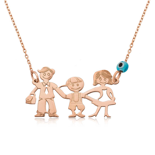 Silver Rose Happy Family Women's Necklace It is a necklace that you will love to use in your daily life and can create various combinations to reflect your style with its different design. The silver happy family necklace that you and your loved ones will enjoy wearing will be one of the best gifts. It is a necklace that goes beyond the norm and can be preferred on special occasions such as Mother's Day, wedding anniversary and New Year's. The necklace is made of 925 sterling silver. Rose plated silver. Rose plated silver necklace models preserve their shine for a long time and oxidation is delayed. The stone on it is glass. Like all silver necklace models, the silver happy family women's necklace model is produced by hand. Due to silver and precious stones, there may be a ± 10% deviation in the average product weight. Width: 3.00 cm Length: 1.50 cm Average Weight: 2.50 gr. Chain Length: 45 cm