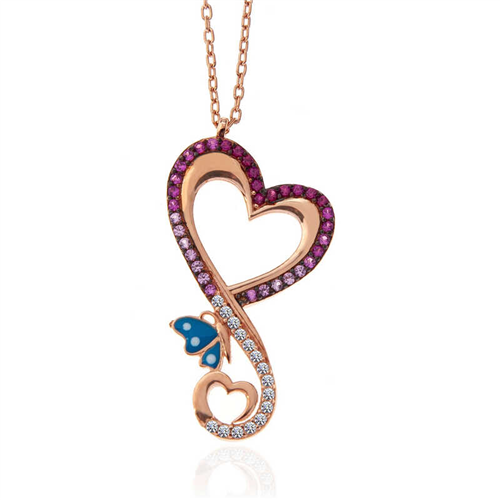 Silver Rose Heart Butterfly Women's Necklace Symbolizing freedom, innocence, and purity, butterflies are the expression of pure love and affection. The spring butterfly necklace symbolizes how love begins with a small spark, then grows with great patience, and finally, a declaration of love. This silver heart butterfly necklace will be one of the most beautiful gifts that both you and your loved ones will enjoy wearing. Rose plating is made on silver. Rose-plated silver women's necklaces preserve their shine for a long time, turn the silver to a pink color, and delay oxidation. Like all silver women's necklaces, the silver heart butterfly women's necklace is hand-crafted. Due to silver and precious stones, there may be ± 10% deviation in the specified product weight. Necklace Width: 1.60 cm Necklace Length: 3.00 cm Chain Length: 45 cm Average Weight: 2.70 gr.