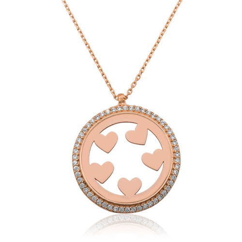 Silver Rose Love Circle Women's Necklace Heart is the way to express love with all its purity, naturalness and sincerity... You can make your lover happy by gifting it on her birthday, Valentine's Day or special occasions with this special design created to express your romantic love... This necklace full of love is made of 925 sterling silver. The stones on the silver love circle women's necklace are zircon. This women's silver necklace is rose gold plated. Rose gold plated women's necklaces preserve their shine for a long time, turn the silver color to pink and delay oxidation. Like all silver necklaces, this silver love circle women's necklace is also handmade. Due to silver and precious stones, there may be a ± 10% deviation in product weight. Width: 2.30 cm Length: 2.30 cm Weight: 3.50 gr.