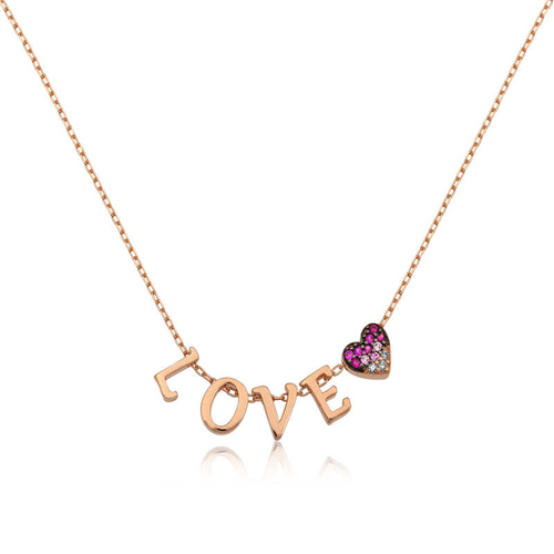 Silver Rose Heart Love Women's Necklace Necklaces with love written on them are the most sublime design where love and affection embraces with all its purity ... How about expressing your love in every language? You can make your beloved happy by gifting this necklace full of love to her on her birthday, Valentine's Day or on special occasions ... This heart love necklace is made of 925 sterling silver. Rose gold plated on silver. Rose gold plated silver necklaces preserve their shine for a long time and delay oxidation. The stones on it are zircon. Like all silver women's necklace models, the silver heart love women's necklace is also produced by hand. Due to silver and precious stones, there may be a ± 10% deviation in the specified product weight. Width: 2.50 cm Length: 0.70 cm Average Weight: 2.20 gr. Chain Length: 45 cm
