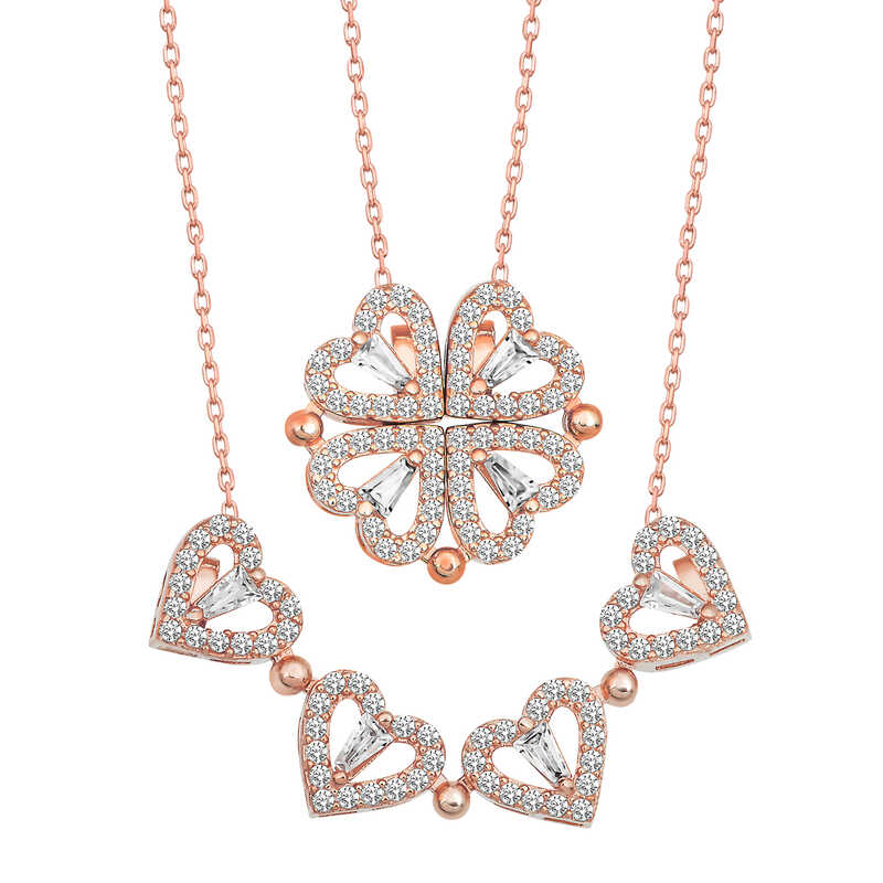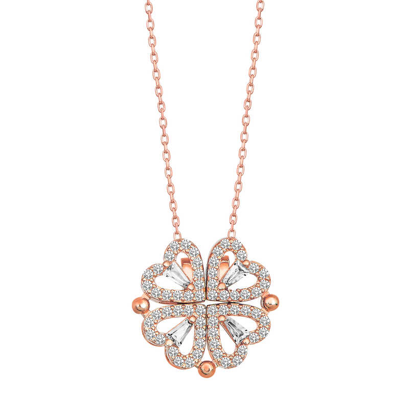 Silver Rose Heart Openable Clover Women's Necklace The four-leaf clover is considered a symbol of good luck in all cultures. The first leaf symbolizes hope, the second faith, the third love, and the fourth leaf luck. This fourth leaf is very rare in nature. The white heart openable clover women's necklace adorned with silver and white zircon stones is a wonderful model that you can enjoy using and gifting to your loved ones. Silver and white stone women's necklace is made of 925 sterling silver. Rose plating is used on the silver necklace. Rose-plated silver women's necklaces preserve their shine for a long time and oxidation is delayed. The average silver chain length is 45 cm. As with all our silver women's necklace models, the silver heart-shaped clover women's necklace is also handmade. You can use it in 2 different ways. Due to silver and precious stones, there may be ± 10% deviation in product weight. Width: 1.70 cm. Length: 1.50 cm. Average Weight: 3.50 gr.