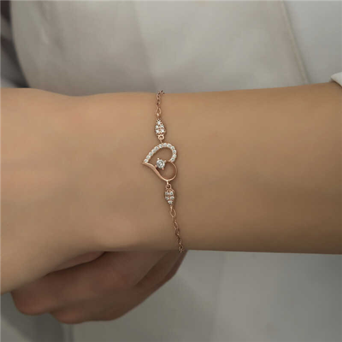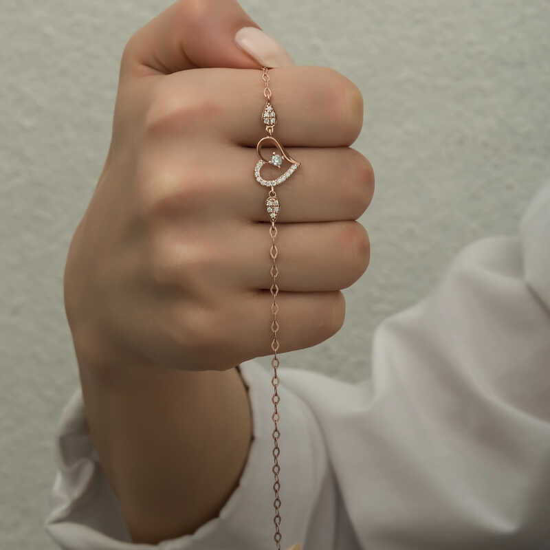 Silver Rose Heart Solitaire Women's BraceletThe heart is the most sublime design that embraces love and affection with all its purity ... How about making your loved ones happy with this stylish heart pattern? You can make them happy by gifting this bracelet full of love to your beloved on your birthday, Valentine's Day or special occasions ... This heart bracelet is made of 925 sterling silver. Rose plated on silver. Rose plated silver women's bracelet models preserve their shine for a long time and delay oxidation. The stones on it are zircon. Like all silver women's bracelet models, the silver heart women's bracelet is also produced by handmade. Due to silver and precious stones, there may be ± 10% deviation in the specified product weight.Heart Width: 1.30 cmHeart Length: 1.20 cmChain Length: 21 cmAverage Weight: 1.70 gr.