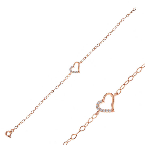 Silver Rose Heart Women's BraceletThe heart is the most sublime design that embraces love and affection with all its purity ... How about making your loved ones happy with this stylish heart pattern? You can make them happy by gifting this bracelet full of love to your beloved on your birthday, Valentine's Day or special occasions ... This heart bracelet is made of 925 sterling silver. Rose plated on silver. Rose plated silver women's bracelet models preserve their shine for a long time and delay oxidation. The stones on it are zircon. Like all silver women's bracelet models, the silver heart women's bracelet is also produced by handmade. Due to silver and precious stones, there may be ± 10% deviation in the specified product weight.Heart Width: 1.00 cmHeart Length: 1.00 cmChain Length: 19 cmAverage Weight: 1.00 gr.