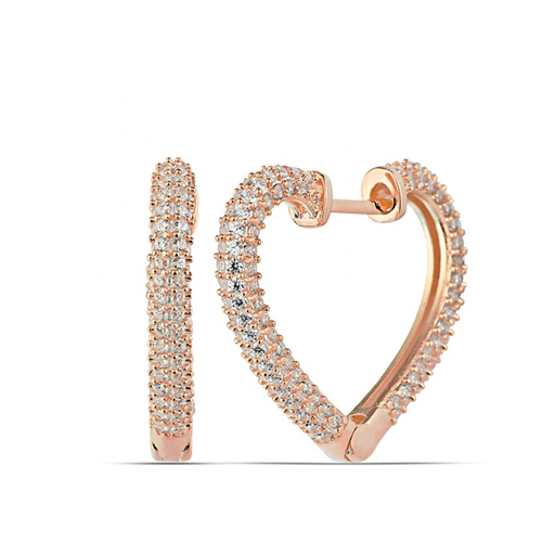 Silver Rose Heart Women's EarringsLet your love come to life on the skin of the woman you love with the heart women's earrings that express love with their heart patterns. This stylish earring model is made of 925 sterling silver. The silver heart women's earrings that your loved ones will enjoy wearing as much as you do are a perfect option as a birthday gift, Valentine's Day gift or a gift for mothers on special occasions. Rose plated silver. Rose plated women's earring models preserve their shine for a long time and oxidation is delayed. Like all silver women's earrings, the silver heart women's earrings are handmade. Due to silver and precious stones, there may be ± 10% deviation in the average product weight.Width: 1.70 cmLength: 1.60 cmAvg. Weight: 3 gr.