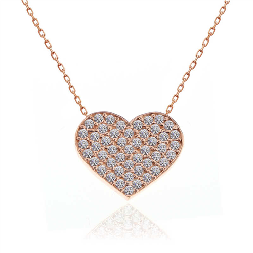 Silver Rose Heart Women's Necklace The heart symbol has always been the symbol of unconditional love and passion. In religious teachings, the power of the heart is limitless. Because the heart is the house of the Creator and our gateway to reality that opens to the universe. This stylish silver heart necklace is a perfect option for a birthday gift, Valentine's Day gift or a gift for mothers on special occasions. The silver heart women's necklace is made of 925 sterling silver. This necklace is rose plated. Rose plated silver women's necklace models preserve their shine for a long time. The stones on it are zircon. Like all our silver women's necklace models, the silver heart women's necklace model is produced by hand. Due to silver and precious stones, there may be ± 10% deviation in the average product weight. Width: 1.40 cm Length: 1.30 cm Average Weight: 1.90 gr. Chain Length: 45 cm