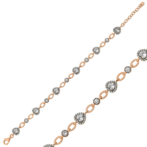 Silver Rose Hearts Women's Bracelet The heart is the most sublime design that embraces love and affection with all its purity ... How about making your loved ones happy with this stylish heart pattern? You can make them happy by gifting this bracelet full of love to your beloved one on her birthday, Valentine's Day or special occasions ... This heart bracelet is made of 925 sterling silver. Rose plated on silver. Rose plated silver women's bracelet models preserve their shine for a long time and delay oxidation. The stones on it are zircon. Like all silver women's bracelet models, the silver heart women's bracelet is also produced by handmade. Due to silver and precious stones, there may be a ± 10% deviation in the specified product weight. Bracelet Heart Width: 0.80 cm Bracelet Heart Length: 0.80 cm Average Weight: 9.20 gr Bracelet Length: 22 cm