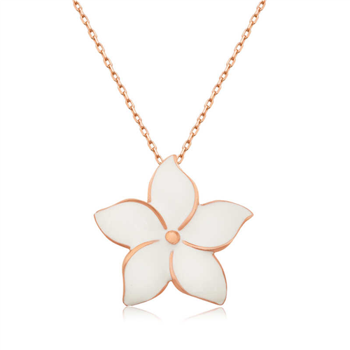 Silver Rose Jasmine Flower Women's Necklace Jasmine flower expresses charm and beauty. It reflects these features with all its simplicity and elegance. You can delight your loved ones or yourself with this special necklace. It is a perfect gift option that you can give to your loved one on birthdays, Valentine's Day and special occasions. This perfect necklace design is made of 925 sterling silver. Rose gold plated on silver. All silver women's necklace models with rose gold plated preserve their shine for a long time and oxidation is delayed. The stones on the necklace are zircon. The silver chain length is 45 cm on average. All of our products are handmade. Due to silver and precious stones, there may be ± 10% deviation from the average product weight. Width: 1.50 cm. Height: 1.50 cm. Average Weight: 2.50 gr.