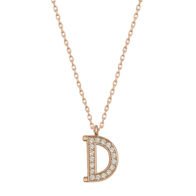 Silver Rose Letter D Women's Necklace With silver letter necklaces, those who are precious to you are always with you... Decorate your loved one's neck with love with this special necklace model that young lovers can choose on special occasions. A silver letter necklace that your loved ones will wear with pleasure will be one of the most meaningful gifts. The women's letter necklace model is made of 925 sterling silver. Rose plated silver. Rose plated silver women's necklace models preserve their shine for a long time. As with all of our products, the silver women's letter necklace model is handmade. Due to silver and precious stones, there may be ± 10% deviation from the average product weight. Width: 0.80 cm Length: 1.10 cm Avg. Weight: 1.30 g