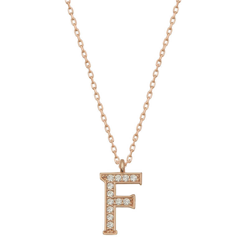 Silver Rose Letter F Women's Necklace With silver letter necklaces, those who are precious to you are always with you... Decorate your loved one's neck with love with this special necklace model that young lovers can choose on special occasions. A silver letter necklace that your loved ones will wear with pleasure will be one of the most meaningful gifts. The women's letter necklace model is made of 925 sterling silver. Rose plated silver. Rose plated silver women's necklace models preserve their shine for a long time. As with all of our products, the silver women's letter necklace model is handmade. Due to silver and precious stones, there may be ± 10% deviation from the average product weight. Width: 0.80 cm Length: 1.10 cm Avg. Weight: 1.30 g