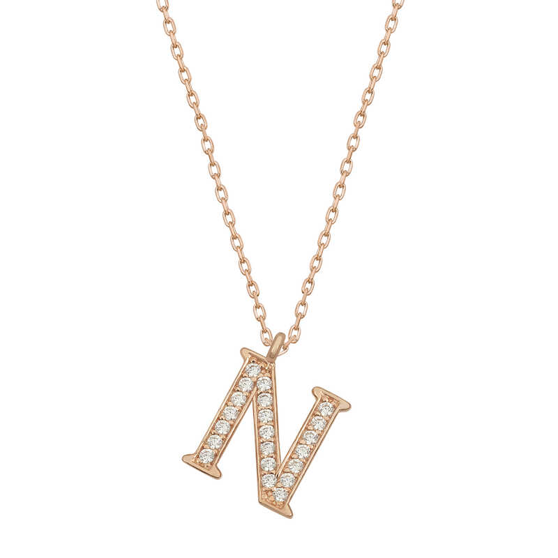 Silver Rose N Letter Women's Necklace With silver letter necklaces, those who are precious to you are always with you... Decorate your loved one's neck with love with this special necklace model that young lovers can choose on special occasions. A silver letter necklace that your loved ones will wear with pleasure will be one of the most meaningful gifts. The letter women's necklace model is made of 925 sterling silver. Rose plated silver. Rose plated silver women's necklace models preserve their shine for a long time. As with all of our products, the silver women's letter necklace model is handmade. Due to silver and precious stones, there may be ± 10% deviation from the average product weight. Width: 0.80 cm Length: 1.10 cm Avg. Weight: 1.30 g