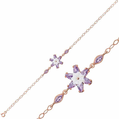 Silver Rose Lilac Lotus Flower Bracelet The Lotus Flower is one of the most beautiful flowers that symbolizes spirituality, morality and cleansing. The lotus flower, which blooms in the polluted waters of the rainforests, has managed to become a symbol of beliefs such as Buddhism and Hinduism with its beauty and purity. Moreover, the lotus flower is considered sacred in many ancient civilizations. Another detail that makes the lotus flower special is the region where the flower grows. The lotus flower, which grows especially in swamps and muddy lands, can remain clean despite the dirty environment in which it grows. The lotus flower, which can clean even a single particle of dust that lands on it, greets those who meet it with a pure white beauty. You can gift the Silver Lilac Lotus Flower Bracelet, which is considered sacred in different cultures, to your loved ones or you can treat yourself. This stylish Bracelet is a perfect option for a birthday gift, Valentine's Day or special occasions. Bracelet; Made of 925 sterling silver. The stones on it are zircon. Rose plated silver. Like other bracelets, silver Lilac lotus flower bracelets are produced by hand. Due to silver and precious stones, there may be ± 10% deviation from the average product weight. Width: 1.20 cm Length: 1.30 cm Bracelet Length: 21 cm Average Weight: 2.70 gr.