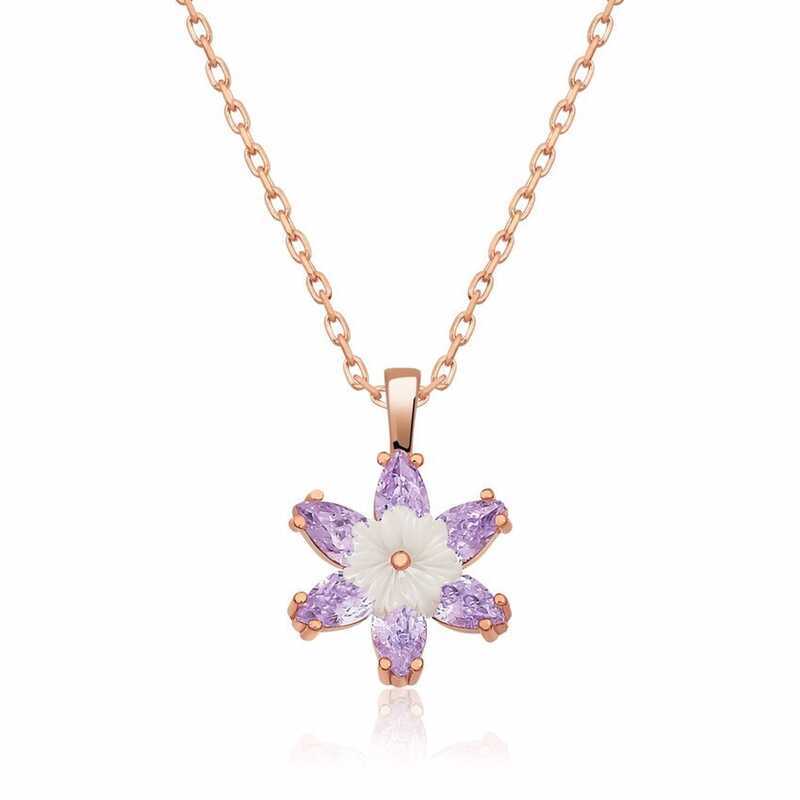 Silver Rose Lilac Lotus Flower Necklace The Lotus Flower is one of the most beautiful flowers that symbolizes spirituality, morality, and cleansing. The lotus flower, which blooms in the polluted waters of the rainforest, has managed to become a symbol of beliefs such as Buddhism and Hinduism with its beauty and purity. Moreover, the lotus flower is considered sacred in many ancient civilizations. Another detail that makes the lotus flower special is the region in which the flower grows. The lotus flower, which grows especially in swamps and muddy lands, can remain clean despite the polluted environment in which it grows. Able to clean even a single particle of dust that lands on it, the lotus flower greets those who encounter it with pure beauty. You can gift the silver Lilac lotus flower necklace, which is considered sacred in different cultures, to your loved ones or to treat yourself. This stylish necklace is a perfect option for a birthday gift, Valentine's Day or special occasions. The necklace is made of 925 sterling silver. Rose gold plated. Like other necklaces, the silver Lilac lotus flower necklace is also handmade. Due to silver and precious stones, there may be a ± 10% deviation from the average product weight. Width: 1.20 cm Length: 1.30 cm Average Weight: 3.01 gr. Chain Length: 45.00 cm