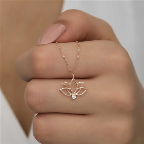 Silver Rose Lotus Flower Women's Necklace The Lotus Flower is one of the most beautiful flowers that symbolizes spirituality, morality, and cleansing. The lotus flower, which blooms in the polluted waters of the rainforest, has managed to become a symbol of beliefs such as Buddhism and Hinduism with its beauty and purity. Moreover, the lotus flower is considered sacred in many ancient civilizations. Another detail that makes the lotus flower special is the region in which the flower grows. The lotus flower, which grows especially in swamps and muddy lands, can remain clean despite the polluted environment in which it grows. Able to clean even a single particle of dust that lands on it, the lotus flower greets those who encounter it with its pure white beauty. You can gift the silver lotus flower necklace, which is considered sacred in different cultures, to your loved ones or to treat yourself. This stylish necklace is a perfect option for a birthday gift, Valentine's Day or special occasions. The necklace is made of 925 sterling silver. The silver is rose plated. Like other necklaces, the silver lotus flower necklace is also handmade. Due to silver and precious stones, there may be a ± 10% deviation from the average product weight. Width: 1.50 cm Length: 1.40 cm Average Weight: 1.30 gr. Chain Length: 45.00 cm