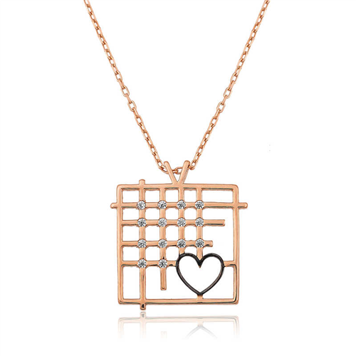 Silver Rose Clasp Necklace Between Railings The heart symbol has always been the symbol of unconditional love and passion. In religious teachings, the power of the heart is limitless. Because the heart is the house of the Creator and our gateway to reality that opens to the universe. The heart between the railings is one of the most stylish and meaningful necklaces that will represent you and your loved one. This stylish heart women's necklace is a perfect option for a birthday gift, Valentine's Day gift or a gift for mothers on special occasions. The heart necklace between the railings with silver zircon stones is made of 925 sterling silver. This necklace is rose plated. The heart women's necklace models between the silver railings with rose plated stones preserve their shine for a long time. The stones on it are zircon. Like all silver women's necklace models, the heart women's necklace between the silver railings is also handmade. Due to silver and precious stones, there may be ± 10% deviation in the average product weight. Width: 1.60 cm Length: 1.60 cm Average Weight: 2.33 gr Chain Length: 45.00 cm