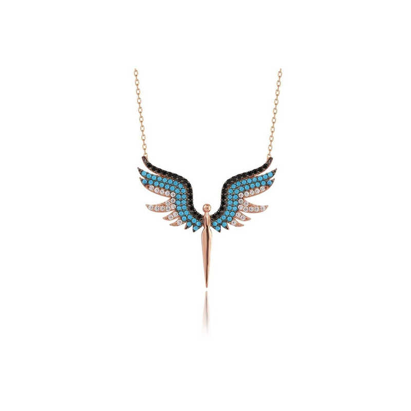 Silver Rose Michael Angel Women's Necklace Hz. Michael is one of the four great angels in our religion. He was given a duty by God Almighty. The origin of the word Michael is Hebrew. In Hebrew, it means "Who is like God?" Michael is an angel mentioned by name in the Quran. Hz. Michael (AS) is mentioned five times in the Quran. The angel Michael is also mentioned in Judaism. In Judaism, Hz. Michael (AS) is called the guardian angel who came to save the Children of Israel. He is also called the chief of the heavenly army. In Judaism, he is also called the angel who fights against Satan. This stylish and meaningful necklace is a perfect option for a birthday gift, Valentine's Day gift or a gift for mothers on special occasions. The necklace is made of 925 sterling silver. Rose gold plated on silver. Rose gold plated products preserve their shine for a long time, turn the silver into a pink color and delay oxidation. Like all silver women's necklaces, this silver Michael angel women's necklace is entirely handmade. Due to silver and precious stones, there may be a ± 10% deviation from the average product weight. Width: 3.10 cm Length: 3.10 cm Average Weight: 3.10 gr. Chain Length: 45.00 cm