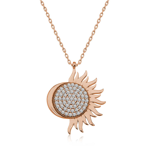 Silver Rose Mihrimah Sultan Women's Necklace The name Mihrimah comes from the Persian word “Mihrü Mah”, which means “Moon” and “Sun”. In the face of Sinan’s love and superior genius, it turns into a kind of source of inspiration. Because out of the love he felt for Mihrimah, Sinan built two mosques on opposite sides of Istanbul: Mihrimah Sultan and Edirnekapı Mosque… Sinan positioned these two mosques in such a way that on March 21, which is thought to be Mihrimah Sultan’s birthday, while the sun sets behind the single minaret of Edirnekapı Mosque, the moon rises between the minarets of the Mihrimah Sultan Mosque in Üsküdar. In other words, the moon and the sun are seen in the sky at the same time, just like Mihrimah’s name. Every March 21st, when night and day are equal, Sinan's love for Mihrimah is reflected once again in the skies of Istanbul. You can crown your elegance with this stone-detailed collection that can accompany you in daily life, at invitations and on special occasions. If you wish, you can gift it to your loved ones and feel the breeze of that immortal love with you in the many beautiful years you will spend together. The elegant necklace is made of 925 sterling silver. Rose plated silver. Rose-plated silver necklaces preserve their shine for a long time and oxidation is delayed. The stones on it are zircon. As with all women's silver products, the silver rose Mihrimah Sultan necklace is also handmade. Due to silver and precious stones, there may be ± 10% deviation from the average product weight. Width: 2.00 cm Length: 2.50 cm Avg. Weight: 4.15 gr.