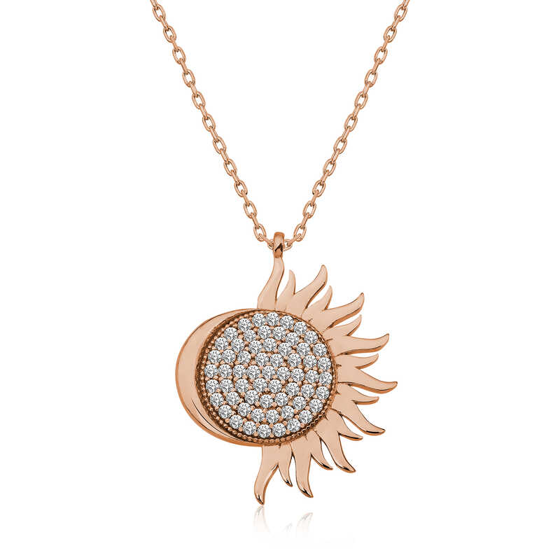 Silver Rose Mihrimah Sultan Women's Necklace The name Mihrimah comes from the Persian word “Mihrü Mah”, which means “Moon” and “Sun”. In the face of Sinan’s love and superior genius, it turns into a kind of source of inspiration. Because out of the love he felt for Mihrimah, Sinan built two mosques on opposite sides of Istanbul: Mihrimah Sultan and Edirnekapı Mosque… Sinan positioned these two mosques in such a way that on March 21, which is thought to be Mihrimah Sultan’s birthday, while the sun sets behind the single minaret of Edirnekapı Mosque, the moon rises between the minarets of the Mihrimah Sultan Mosque in Üsküdar. In other words, the moon and the sun are seen in the sky at the same time, just like Mihrimah’s name. Every March 21st, when night and day are equal, Sinan's love for Mihrimah is reflected once again in the skies of Istanbul. You can crown your elegance with this stone-detailed collection that can accompany you in daily life, at invitations and on special occasions. If you wish, you can gift it to your loved ones and feel the breeze of that immortal love with you in the many beautiful years you will spend together. The elegant necklace is made of 925 sterling silver. Rose plated silver. Rose-plated silver necklaces preserve their shine for a long time and oxidation is delayed. The stones on it are zircon. As with all women's silver products, the silver rose Mihrimah Sultan necklace is also handmade. Due to silver and precious stones, there may be ± 10% deviation from the average product weight. Width: 2.00 cm Length: 2.50 cm Avg. Weight: 4.15 gr.