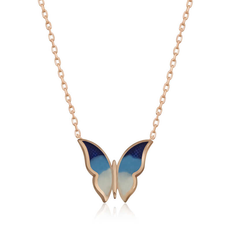 Silver Rose Minimal Butterfly Women's Necklace Butterflies, symbolizing freedom, innocence, and purity, are the expression of pure love and affection. The spring butterfly necklace symbolizes how love begins with a small spark, then grows with great patience, and finally, a declaration of love. A minimal butterfly women's necklace that you and your loved ones will enjoy wearing will be one of the most beautiful gifts. The necklace is made of 925 sterling silver. Rose plating is applied to the silver. Rose-plated silver women's necklaces preserve their shine for a long time and delay oxidation. The colors on the necklace are enamel work. The average silver chain length is 45 cm. Like all silver women's necklaces, the silver minimal butterfly women's necklace is also handmade. Due to silver and precious stones, there may be a ± 10% deviation in the specified product weight. Width: 1.20 cm Length: 1.10 cm Average Weight: 1.67 gr.