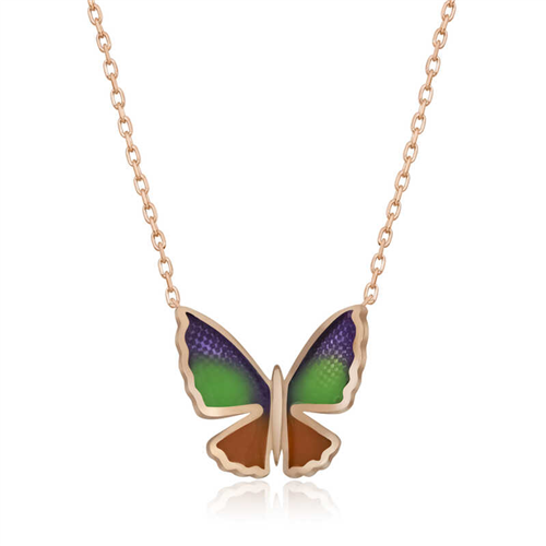 Silver Rose Minimal Butterfly Women's Necklace Butterflies, symbolizing freedom, innocence, and purity, are the expression of pure love and affection. The spring butterfly necklace symbolizes how love begins with a small spark, then grows with great patience, and finally, a declaration of love. A minimal butterfly women's necklace that you and your loved ones will enjoy wearing will be one of the most beautiful gifts. The necklace is made of 925 sterling silver. Rose plating is applied to the silver. Rose-plated silver women's necklaces preserve their shine for a long time and delay oxidation. The colors on the necklace are enamel work. The average silver chain length is 45 cm. Like all silver women's necklaces, the silver minimal butterfly women's necklace is also handmade. Due to silver and precious stones, there may be a ± 10% deviation in the specified product weight. Width: 1.20 cm Length: 1.10 cm Average Weight: 1.81 gr.