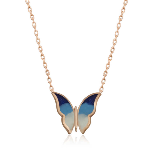 Silver Rose Minimal Butterfly Women's Necklace Butterflies, symbolizing freedom, innocence, and purity, are the expression of pure love and affection. The spring butterfly necklace symbolizes how love begins with a small spark, then grows with great patience, and finally, a declaration of love. A minimal butterfly women's necklace that you and your loved ones will enjoy wearing will be one of the most beautiful gifts. The necklace is made of 925 sterling silver. Rose plating is applied to the silver. Rose-plated silver women's necklaces preserve their shine for a long time and delay oxidation. The colors on the necklace are enamel work. The average silver chain length is 45 cm. Like all silver women's necklaces, the silver minimal butterfly women's necklace is also handmade. Due to silver and precious stones, there may be a ± 10% deviation in the specified product weight. Width: 1.20 cm Length: 1.10 cm Average Weight: 1.67 gr.