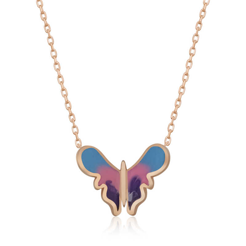 Silver Rose Minimal Butterfly Women's Necklace Butterflies, symbolizing freedom, innocence, and purity, are the expression of pure love and affection. The spring butterfly necklace symbolizes how love begins with a small spark, then grows with great patience, and finally, a declaration of love. A minimal butterfly women's necklace that you and your loved ones will enjoy wearing will be one of the most beautiful gifts. The necklace is made of 925 sterling silver. Rose plating is applied to the silver. Rose-plated silver women's necklaces preserve their shine for a long time and delay oxidation. The colors on the necklace are enamel work. The average silver chain length is 45 cm. Like all silver women's necklaces, the silver minimal butterfly women's necklace is also handmade. Due to silver and precious stones, there may be a ± 10% deviation in the specified product weight. Width: 1.30 cm Length: 1.00 cm Average Weight: 1.81 gr.
