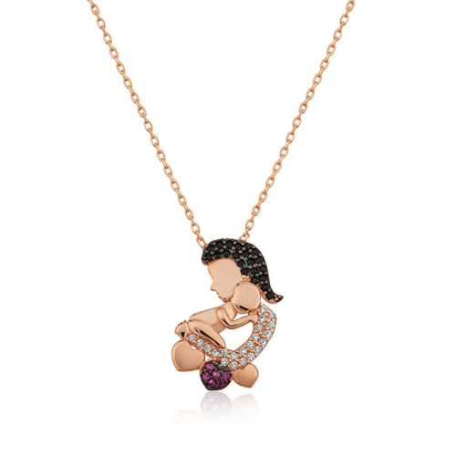 Silver Rose Mother and Baby Necklace It is a special design that represents the love between a child and a mother. One of the most appropriate gifts you can buy to show your devotion to your mother will be this mother and baby necklace. This specially designed heart-shaped mother and baby necklace designed for your mother is made of 925 sterling silver. Rose plated silver. Rose plated silver mother and baby necklace models preserve their shine for a long time and oxidation is delayed. The stones on the necklace are zircon. The average silver chain length is 45 cm. The silver heart mother and child necklace is handmade. Due to silver and precious stones, there may be a ± 10% deviation in the average product weight. Width: 1.30 cm Length: 1.90 cm Average Weight: 2.30 gr.