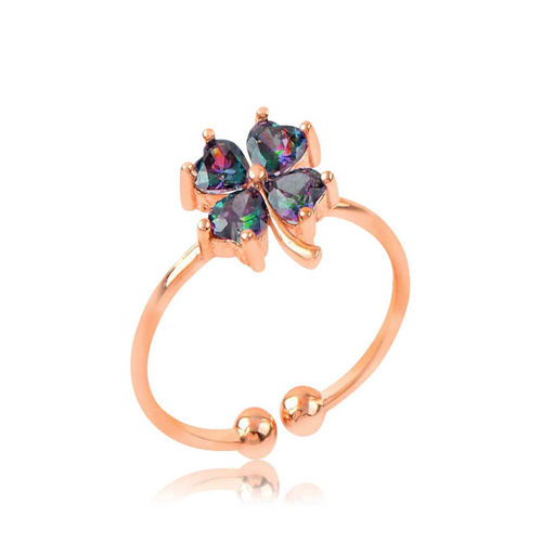 Silver Rose Mystic Topaz Clover Women's Ring Topaz is one of the rarest precious stones thanks to its dazzling, sparkling, glassy appearance. Mystic topaz is more effective on people with the zodiac signs of Leo, Virgo, Scorpio, Sagittarius, and Pisces. Some of its energetic benefits include its ability to relieve stress. It creates a sense of calm and peace, and invigorates. By reducing the different effects of the moon phases on people, it provides spiritual balance. The four-leaf clover is considered a symbol of good luck in all cultures. The first leaf symbolizes hope, the second symbolizes faith, the third symbolizes love, and the fourth leaf symbolizes luck. This fourth leaf is very rare in nature. Adorn your loved one's finger with love with this special ring. The silver four-leaf adjustable clover women's ring model has rose plating. Rose-plated silver women's rings preserve their shine for a long time and give the silver a pink color. The silver four-leaf adjustable clover women's ring will be one of the most beautiful gifts that both you and your loved ones will enjoy wearing. Like all our silver women's ring models, the silver four-leaf adjustable clover women's ring is handmade. Due to the silver and precious stones, there may be a ± 10% deviation from the average product weight. Width: 1.00 cm Length: 1.50 cm Average Weight: 2.75 gr.