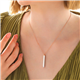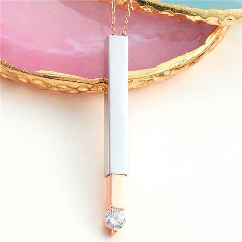 Silver Rose Name Written Opening Bar Necklace for Women You can use this personalized necklace that suits your chic and sporty style very comfortably in your daily life. Silver name writable women's bar necklace is a perfect option as a birthday gift, Valentine's Day gift on special occasions. Silver necklace is made of 925 sterling silver. Rose plated silver. Rose plated silver name writable women's bar necklace preserves its shine for a long time, gives the silver a rose color and delays oxidation. As with all necklaces, the silver name writable women's opening bar necklace is also handmade. Due to silver and precious stones, there may be ± 10% deviation in the average product weight. Necklace Width: 0.40 cm Necklace Length: 3.80 cm Chain Length: 45 cm Average Weight: 4.30 gr.