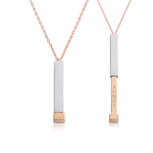 Silver Rose Name Written Opening Bar Necklace for Women You can use this personalized necklace that suits your chic and sporty style very comfortably in your daily life. Silver name writable women's bar necklace is a perfect option as a birthday gift, Valentine's Day gift on special occasions. Silver necklace is made of 925 sterling silver. Rose plated silver. Rose plated silver name writable women's bar necklace preserves its shine for a long time, gives the silver a rose color and delays oxidation. As with all necklaces, the silver name writable women's opening bar necklace is also handmade. Due to silver and precious stones, there may be ± 10% deviation in the average product weight. Necklace Width: 0.40 cm Necklace Length: 2.00 cm Chain Length: 45 cm Average Weight: 3.30 gr.