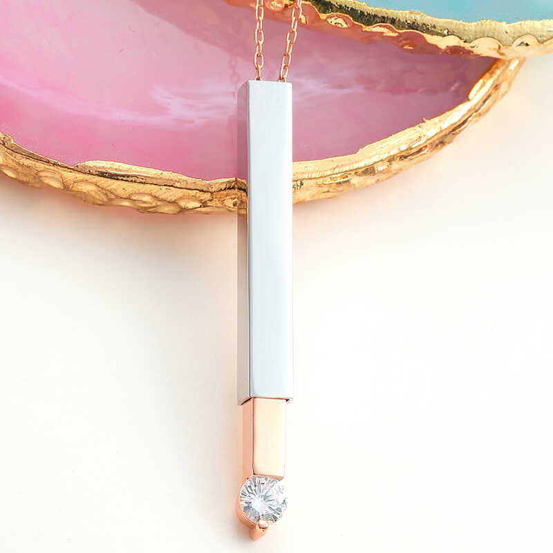 Silver Rose Name Written Opening Bar Necklace for Women You can use this personalized necklace that suits your chic and sporty style very comfortably in your daily life. Silver name writable women's bar necklace is a perfect option as a birthday gift, Valentine's Day gift on special occasions. Silver necklace is made of 925 sterling silver. Rose plated silver. Rose plated silver name writable women's bar necklace preserves its shine for a long time, gives the silver a rose color and delays oxidation. As with all necklaces, the silver name writable women's opening bar necklace is also handmade. Due to silver and precious stones, there may be ± 10% deviation in the average product weight. Necklace Width: 0.40 cm Necklace Length: 3.80 cm Chain Length: 45 cm Average Weight: 4.30 gr.