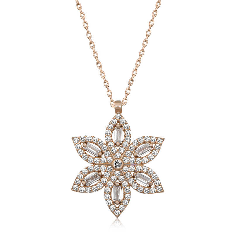 Silver Narcissus Flower Women's Necklace The most special and elegant way to express your feelings to your loved ones is through stylish, colorful, and fragrant flowers that you can send them. Because the narcissus means respect, it is one of the flowers that can be given to those you value and respect in your life. There are different types of narcissus. But they are all generally known and used as Narcissus. It is also known as the flower of beauty and love. The flower, which is among the gifts to be given on special occasions, this time finds meaning with a silver necklace. The silver flower women's necklace crafted with the highest quality, brightest, and most sparkling stones is waiting for those who want to express their love once again, for those who want to say "you are a flower." This specially designed silver narcissus flower women's necklace is made of 925 sterling silver. Rose plated silver. Rose plated silver women's necklace models preserve their shine for a long time and oxidation is delayed. The white stones on the necklace are baguette and zircon. The average silver chain length is 45 cm. Like all women's silver necklace models, the silver narcissus flower women's necklace is also handmade. Due to silver and precious stones, there may be a ± 10% deviation in the specified product weight. Width: 1.80 cm Length: 2.30 cm Weight: 2.90 gr.