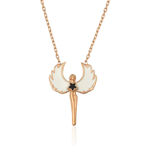 Silver Rose Water Fairy Necklace The water fairy symbolizes the most beautiful wishes, luck, goodness, and hope. The water fairy necklace symbolizes many desires from love to abundance. Fairy and angel necklace designs are one of the most preferred forms in the jewelry industry. The necklaces that you can make happy by gifting them to your loved ones on special occasions will strengthen the bond between you with their sparkling appearance. The necklace models that you will always carry in your daily life have designs that will showcase your strong stance and keep you up to date with fashion. The necklace is made of 925 sterling silver. The silver is rose plated. Like other necklaces, the silver rose water fairy necklace is produced by hand. Due to silver and precious stones, there may be a ± 10% deviation in the average product weight. Width: 1.60 cm Length: 2.10 cm Average Weight: 2.40 gr. Chain Length: 45.00 cm