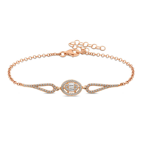 Silver Rose Oval Baguette Bracelet You can use our fashion-friendly silver baguette bracelet models in an elegant way both in your daily life and on special days and nights. You can complete your outfits with innovative products that appeal to the taste of women of all ages. With designs that each appeal to a different style, you can choose our models that suit your sporty, classic and alternative clothing styles. This stylish bracelet is a perfect option for a birthday gift, a Valentine's Day gift or on special occasions. Silver rose oval baguette stone women's bracelet is made of 925 sterling silver. This bracelet is rose gold plated. Rose gold plated products preserve their shine for a long time and delay oxidation. Like all silver women's bracelet models, the silver rose oval baguette stone women's bracelet model is also handmade. Due to silver and precious stones, there may be a ± 10% deviation in the average product weight. Width: 0.90 cm Length: 6.00 cm Average Weight: 4.00 gr. Average Length: 20.00 cm
