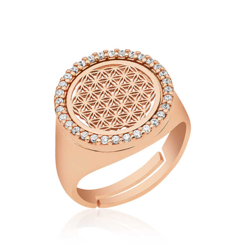 Silver Rose Oval Flower of Life RingDesigns with the flower of life motif, which embody the secrets of the universe and life, are designs that come to life with the finest workmanship. The flower of life, formed by the center of each circle and the intersection of the six surrounding circles, is among the most special and meaningful designs that will make you feel that the miracle and inspiration is you. You can also choose flower of life motif designs as gifts for your loved ones, so you can make the person in your life feel how special and valuable they are to you. You can gift the “Flower of Life” collection designs to women of all ages, where your loved one will always remember you when they wear them and you can express your feelings in the best way. The silver adjustable rose oval flower of life ring is also among these options. The ring is made of 925 sterling silver. The silver is rose plated. Like other rings, the silver adjustable rose plated oval flower of life ring is produced by hand. Due to silver and precious stones, there may be a ± 10% deviation in the average product weight.Width: 1.50 cmLength: 1.50 cmAverage Weight: 3.65 gr.